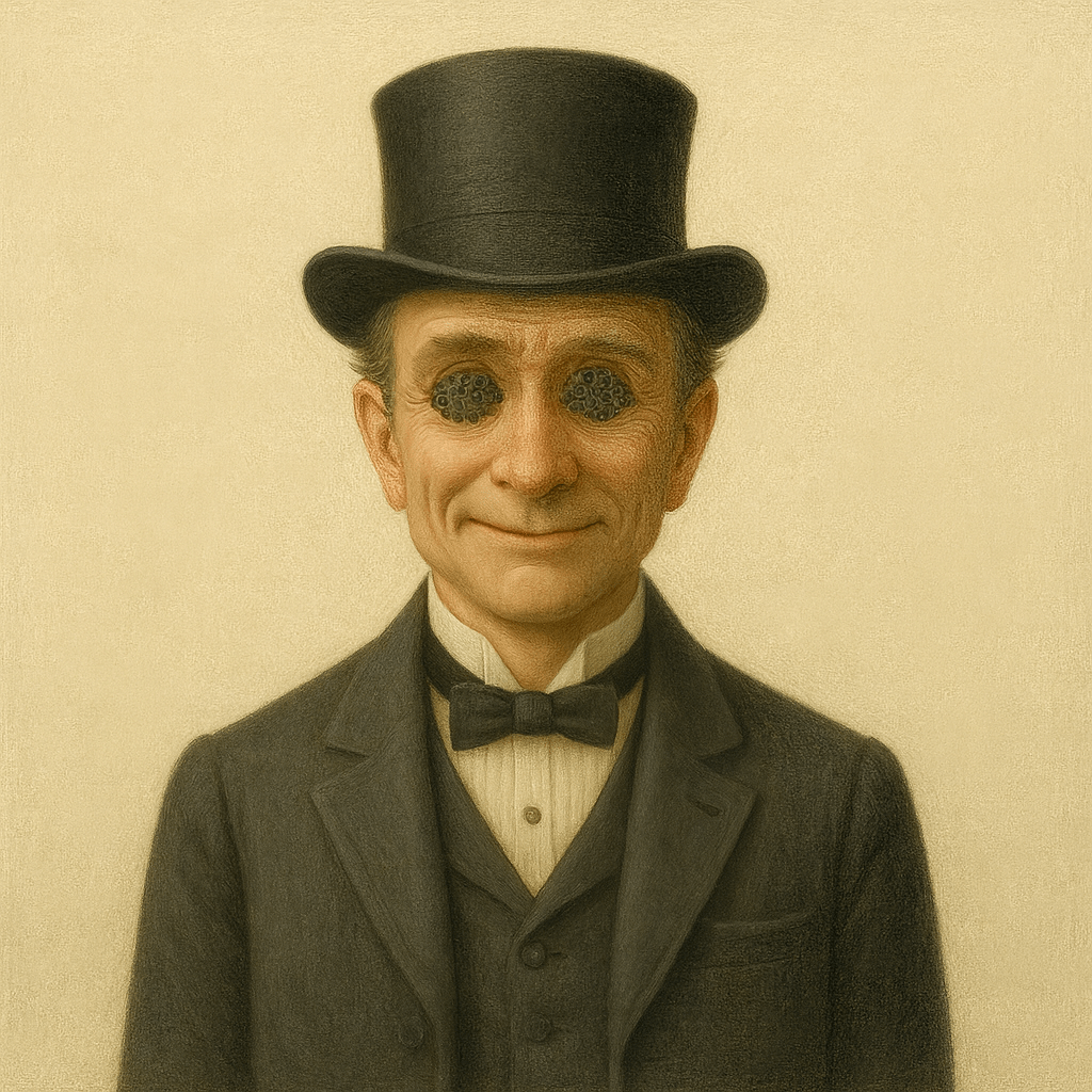 蒼白的視野中,一位穿著燕尾服、戴著禮帽、一表斯文的中年男子朝他走來。